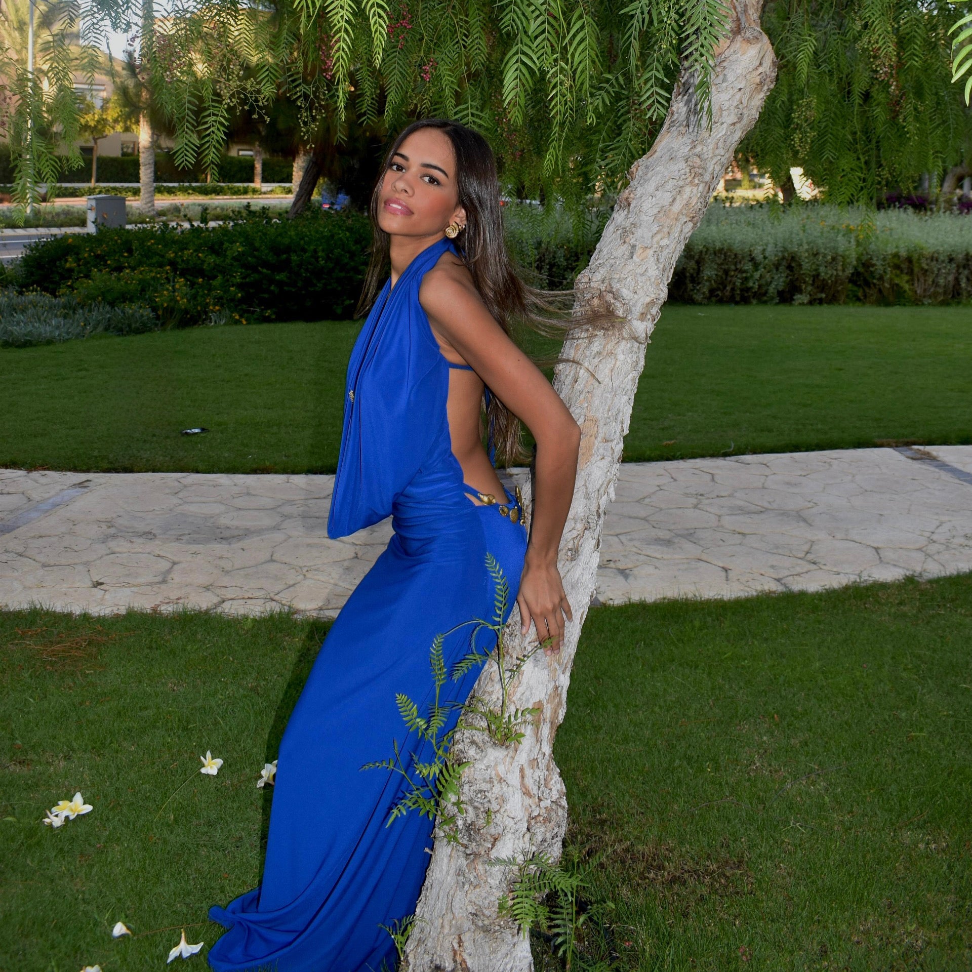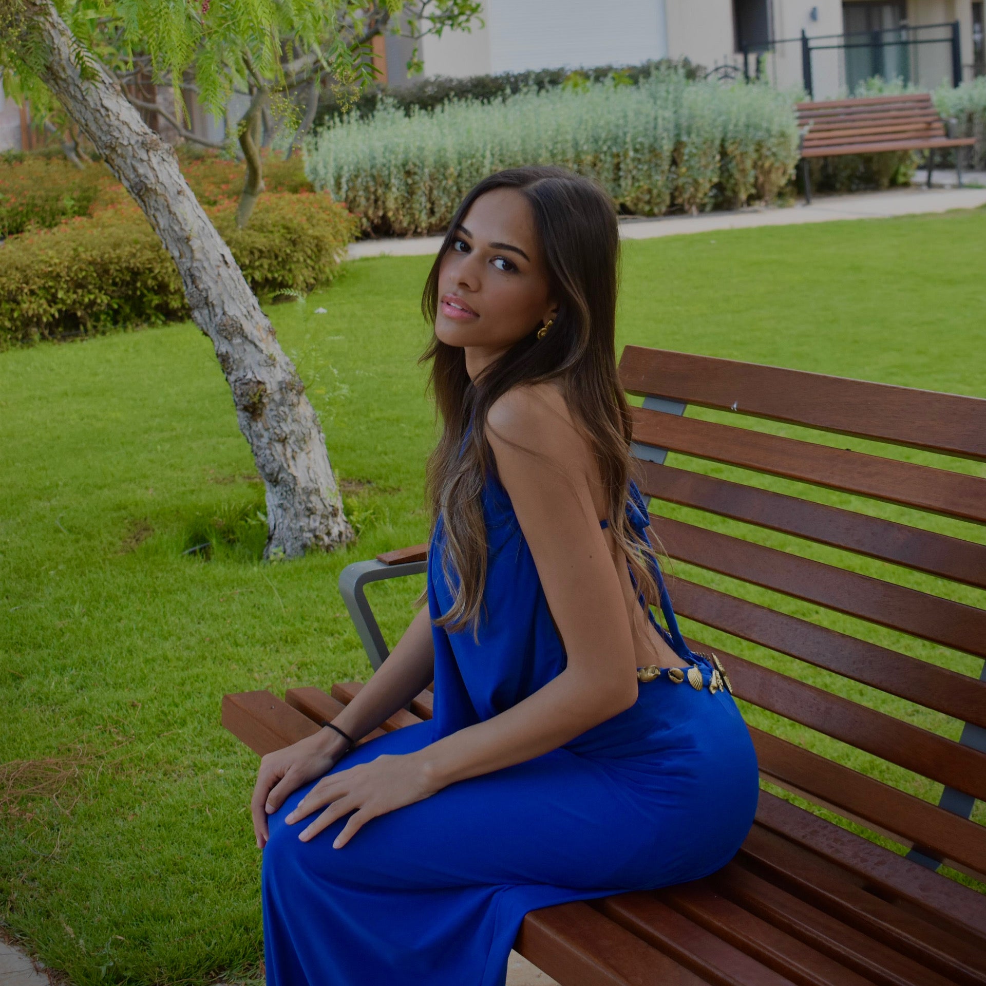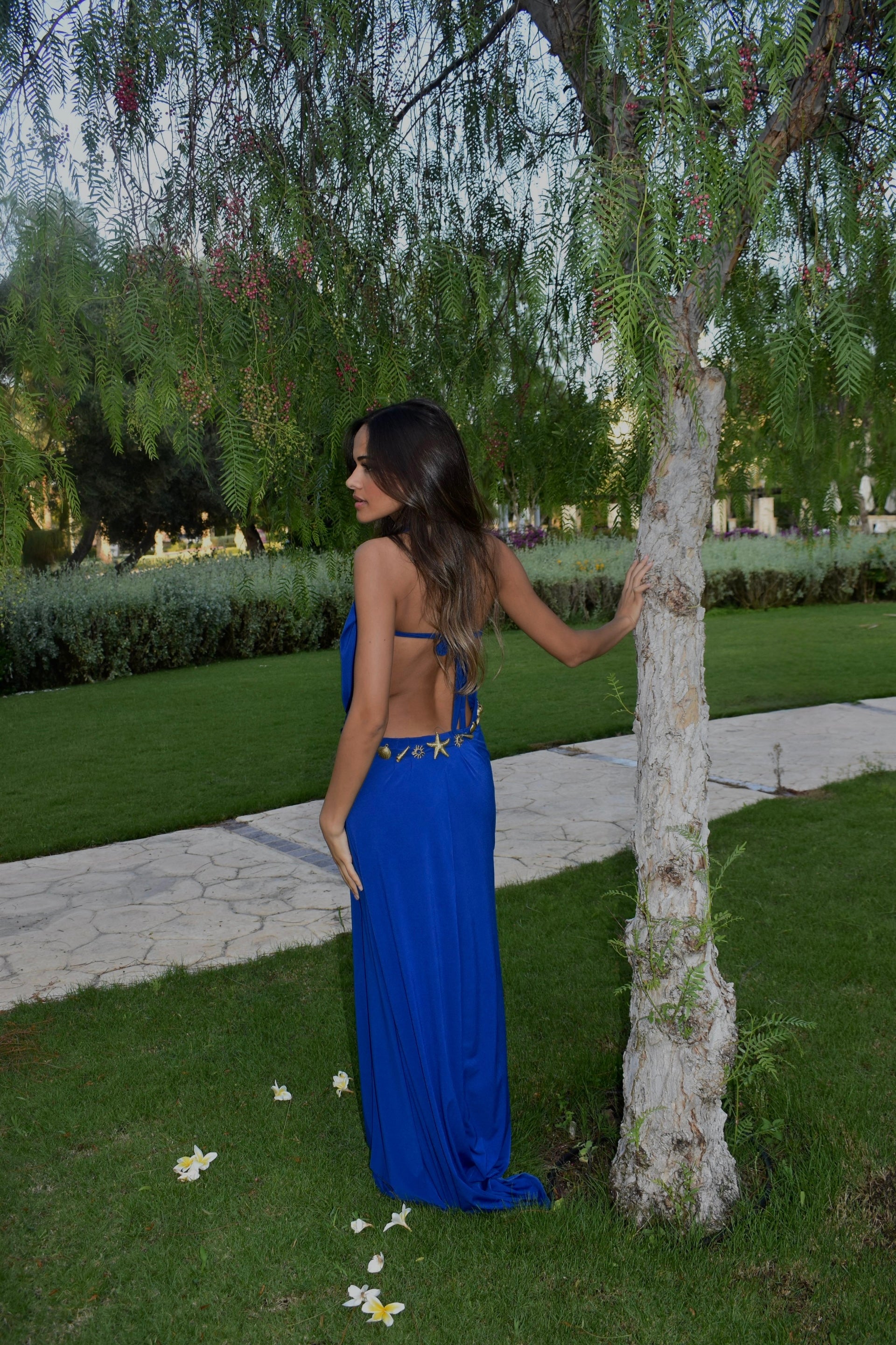 Our Sia Dress features the perfect shade of royal blue, complemented by gold accessories that add a touch of elegance. It's the ideal choice for your next beach occasion—effortless, stylish, and unforgettable
